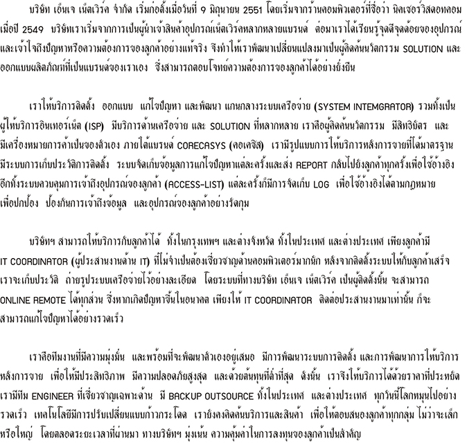 - ประสบการณ์การทำงานด้านการวางระบบเครือข่ายคอมพิวเตอร์มากว่า 20 ปี |