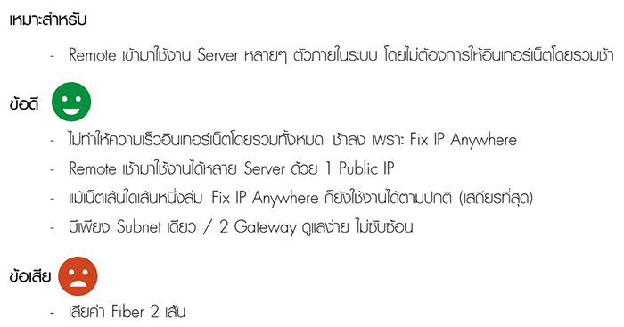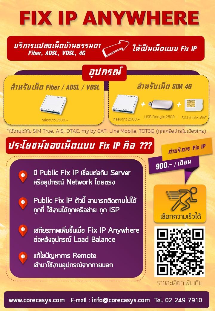 | ไม่มีโครงข่ายใด หรือสายสัญญาณใด ดีที่สุดในทุกพื้นที่ Fix IP Anywhere คือทางออกของ Admin ในการทำระบบระยะยาว |