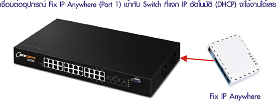เอาสาย LAN จาก Notebook เสียบเข้าที่ช่อง 2 ของ อุปกรณ์ Fix IP Anywhere |