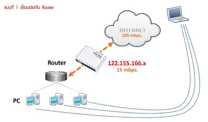 เชื่อมต่อผ่าน Bridge Modem (ลูกค้าสามารถใส่ค่า User Name / Password ได้เอง |