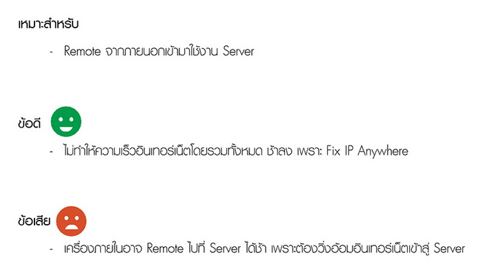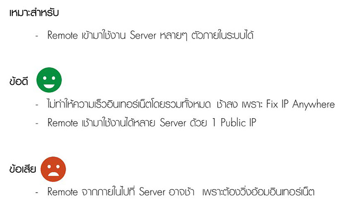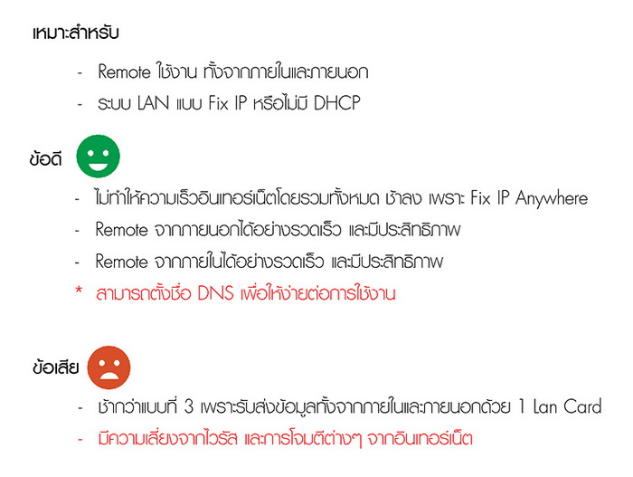 สามารถแก้ไขปัญหาการ Remote เข้ามาใช้งานอุปกรณ์จากภายนอกได้ |