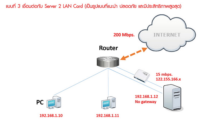 สามารถมี Public Fix IP เชื่อมต่อกับ Server โดยตรงหรือ Router |