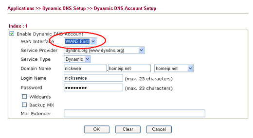 นอกจาก Vigor 2910 จะรองรับ DDNS ได้ถึง 3 ชื่อแล้ว ยังสามารถกำหนด DDNS กับขา WAN แต่ละขาได้ด้วย ดังนั้นเมื่อ Wan ใด WAN หนึ่งล่ม ก็สามารถเชื่อมต่อเข้ามาที่ Router ผ่าน WAN ที่เหลือได้ จึงหมดปัญหาเรื่องการ Remote Support จากภายนอก