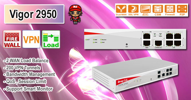 ก่อนที่จะ Review ผลิตภัณฑ์ Vigor 2950 นั้น ข้าพเจ้าคิดอยู่นาน เนื่องจากการ Review Vigor 2910 (เทพแห่ง Boardband Router) ที่ผ่านมานั้น กินความยาวหน้ากระดาษไปหลายหน้ามาก แต่มาถึงปัจจุบัน ข้าพเจ้าไม่สามารถที่จะเลี่ยงการ Review อุปกรณ์ตัวนี้ได้อีกแล้ว เนื่องจากคุณสมบัติที่โดดเด่นของ Vigor 2950 ในส่วนของ Smart Monitor, SSL VPN, VPN Backup และ VPN Load Balance ที่โดดเด่นอย่างแท้จริง มาดูคุณสมบัติโดยรวมของอุปกรณ์กันก่อน