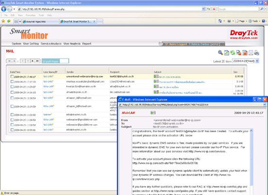 หากระบบเครือข่ายมีปัญหา ท่านก็ไม่ต้องไปหาซื้อโปรแกรมเพื่อวิเคราะห์จากที่ไหน เพราะ Vigor 2950 รองรับการจัดเก็บ Log ตาม พรบ.50 โดยจะจัดเก็บ IP Address ข้างในที่ออกไปยัง Public ด้านนอกทุก Port แม้คำสั่ง Ping ก็จะมีการบันทึกไว้ทั้งหมด จึงไม่มีทางที่ผู้ใช้ภายในระบบเครือข่าย จะออกไปยังเครือข่ายภายนอก โดยไม่มีการบันทึกไว้ ทั้งนี้ Vigor 2950 มีโปรแกรม System Log มาให้ท่านอยู่แล้วในแผ่น CD ที่มากับเครื่อง