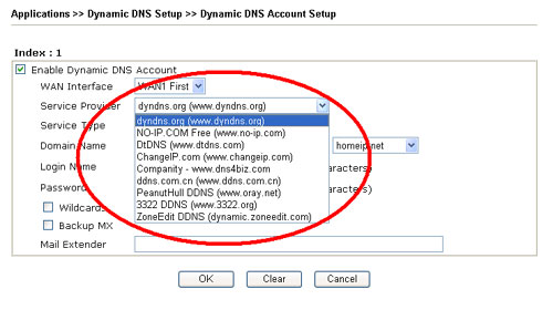 ภาพที่ 20 DDNS ทั้งหมดที่ Vigor 2950 รองรับ