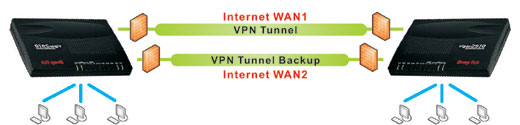 Function นี้จะทำให้การเชื่อมโยง VPN ของคุณมีเสถียรภาพอย่างไร้ที่ติด เนื่องจากพื้นฐานอินเตอร์เน็ตที่มีเสถียรภาพนั้น จะประกอบด้วย 2 โครงสร้างคือ 2 Carrier และ 2 Gateway ดังนั้นหากท่านมีอินเตอร์เน็ตที่มีเสถียรภาพโดยใช้ Load Balance ของ Vigor 2950 แล้ว หาก VPN ใด VPN หนึ่งล่ม อีก 1 VPN ที่เหลืออยู่จะพยายามใช้อินเตอร์เน็ตที่มีอยู่ เชื่อมต่อไปยังจุดหมายปลายทางใด้สำเร็จ ทั้งนี้จากการทดลองระบบ VPN Backup นั้น การเชื่อมต่อ Tunnel สำรองจะทำได้แล้วเสร็จภายใน 5 วินาที โดยหากท่าน Ping ไปยังจุดหมายปลายทางทิ้งเอาไว้ แล้วปลดสาย Wan ที่กำลังเชื่อมต่อ VPN อยู่ Time out จะมีเพียงบรรทัดเดียวเท่านั้น