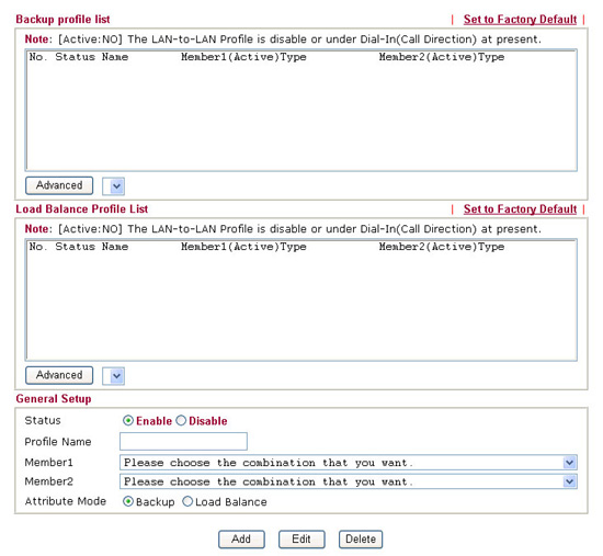 ภาพที่ 6 Load Balance Mode ของ Vigor 2950
