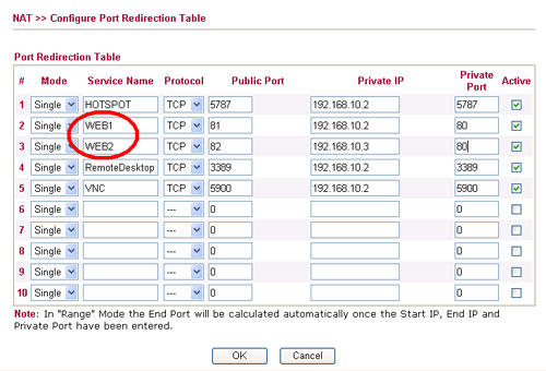 จากตัวอย่างภาพที่ 31 จะเห็นได้ว่า หากเชื่อมต่อมายัง Router ผ่าน Port 81 ก็จะเข้ามาที่ Web Server IP 192.168.10.2 และหากเชื่อมต่อมายัง Router ที่ Port 82 ก็จะเข้ามาที่ Web Server IP 192.168.10.3 เป็นต้น ..... โดยทั่วไปแล้วการใช้งาน Nat บน Router ทั่วไปไม่สามารถแปลง Port จากขานอกมาเป็น Port ขาในตามต้องการได้