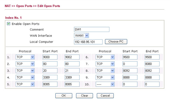 ในกรณีที่ Nat Port Redirection ไม่พอเพียงต่อการใช้งาน คือมีการ Forward Port เข้ามายัง IP ภายในมากกว่า 20 Port ท่านก็ยังสามารถใช้ Open Port แต่ละ IP ได้อีก 10 Port ต่อ 1 IP และสามารถกำหนด Open Port ได้สูงสุดถึง 20 IP รวมแล้ว 200 Port เลยทีเดียว