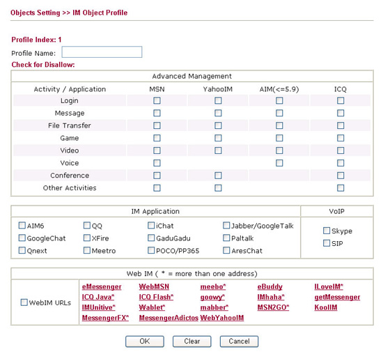 Vigor 2950 ยกระดับในการBlock IM ได้อย่างแนบเนียน โดยสามารถแบ่งระดับการ Block IM (MSN Messenger, ICQ, Yahoo Messenger, AIM) ได้เช่น IP บางกลุ่ม อนุญาตให้ใช้ IM เพื่อรับส่งข้อความเพียงอย่างเดียว IP บางกลุ่ม อนุญาตให้รับส่งข้อความได้และรับส่งไฟล์ได้ หรือ IP บางกลุ่มอาจอนุญาตให้ใช้ IM แบบเต็มรูปแบบเลยก็ได้เช่น รับส่งข้อความ รับส่งไฟล์ และใช้ VDO Conference ได้ด้วย