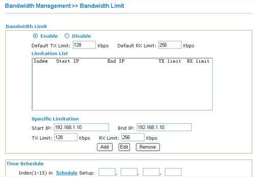 คุณสมบัติเด่นอย่างหนึ่งของ Vigor 2910 Series ที่ Router ยี่ห้ออื่นๆ ไม่มีก็คือ การกำหนดความเร็วอินเตอร์เน็ตของแต่ละ IP แบบ Kbps Rate ได้อย่างแท้จริง โดยปกติแล้ว Router ทั่วไปที่ขายตามท้องตลาดสามารถทำได้เพียง QOS เท่านั้น คือกำหนดการทำงานได้เพียง ให้ Web หรือ FTP วิ่งที่กี่เปอร์เซ็นต์ของ Bandwidth ทั้งหมดเป็นต้น ฟังก์ชั่นนี้โดยทั่วไปจะมีเฉพาะกับ Manage Switch หรือ Router รุ่นใหญ่ๆ เท่านั้น เช่น IP 192.168.1.10 ให้สามารถใช้ Download (RX) ได้ที่ 256Kbps และ Upload (TX) ที่ 128 Kbps เป็นต้น อีกทั้งยังสามารถกำหนดช่วงเวลาในการใช้ Policy ดังกล่าวได้อีกด้วย