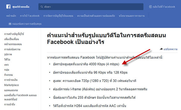 - Live Facebook นอกสถานที่ (ด้วยความละเอียดสูงสุด HD / ต้องการความเร็วขั้นต่ำ 5 Mbps.) |