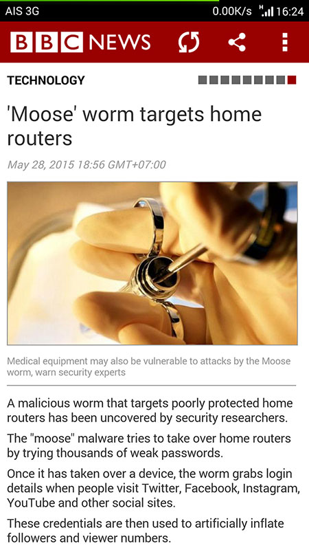 เนื่องจากปัจจุบัน มีช่องโหว่ด้านระบบเครือข่าย และไวรัสแพร่หลายเป็นจำนวนมาก ยกตัวอย่างเช่นไวรัสสายพันธุ์ใหม่ที่มุ่งเจาะเข้ารหัสผ่าน Router ตามบ้านที่ไม่ได้ไม่ได้ตั้ง Password ไว้ดีพอ ดังตัวอย่างข่าวใน BBC ตามภาพด้านล่าง