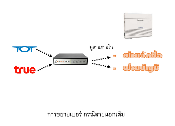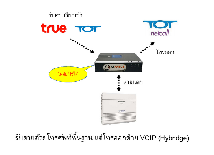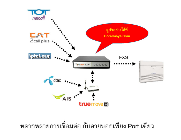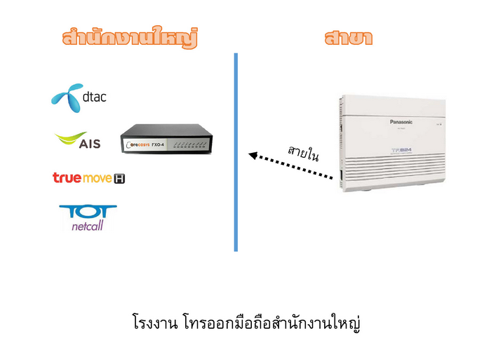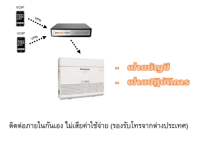| แม้ในปัจจุบันจะมีระบบสื่อสารทางอินเตอร์เน็ตมากมาย ทั้ง Line, Skype ฯลฯ แต่ระบบสื่อสารเหล่านี้ ไม่สามารถใช้ในเชิงธุรกิจได้อย่างมีประสิทธิภาพ เนื่องจากการติดต่อในเชิงธุรกิจนั้น เราทำกันผ่านระบบ PABX กันมานาน เวลาจะติดต่อถึงตัวบุคคลภายในองค์กร ก็มักจะต้องทำผ่านระบบ PABX ด้วยกันทั้งนั้น เนื่องจากระบบ PABX มีระบบตอบรับอัตโนมัติ และสามารถแบ่งกลุ่มแยกสายเรียกเข้าไปยังแผนกต่างๆ ได้อย่างมีประสิทธิภาพ (ปัจจุบัน IPPBX ก็สามารถทำงานได้เรียเท่ากับ PABX แล้ว) ท่านสามารถดูตัวอย่างการเชื่อมต่อ PABX เข้ากับระบบ VOIP ในรูปแบบต่างๆ ตามด้านล่างนี้ |